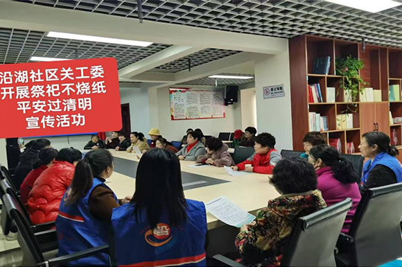 为倡导文明祭祀树立新风,消除火灾隐患,保障清明期间社区安全,4月3日上午9时,沿湖社区关工委在社区会议室开展“祭祀不烧纸·平安过清明”主题宣讲活动。沿湖社区党委副书记、关工委副主任胡春燕主持活动仪式,沿湖社区关工委主任王朕进行主题宣讲,社区关工委成员、关工小组长暨“五老”工作室志愿者25人参会宣讲及宣传活动。