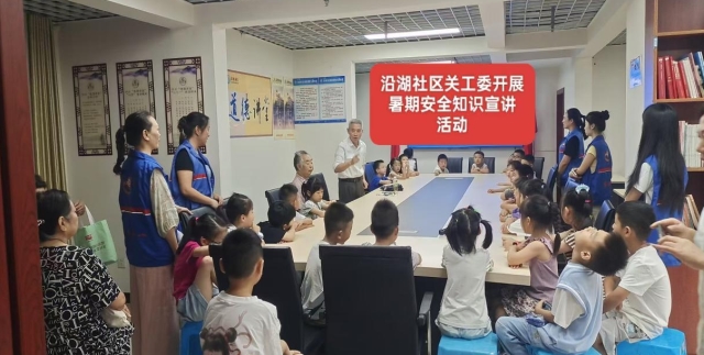 2025年7月24日下午2时30分,沿湖社区关工委在社区会议室开展了少年儿童暑期安全知识宣讲活动,卫坪街道关工委执行副主任赵知荣莅临宣讲现场指导工作,
