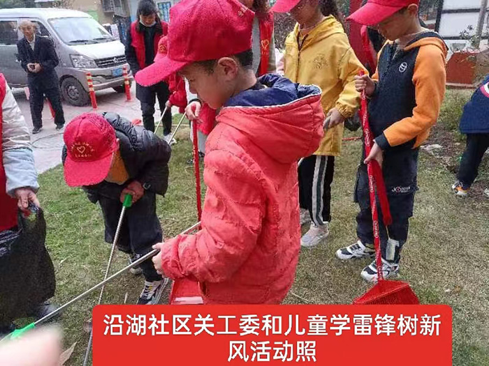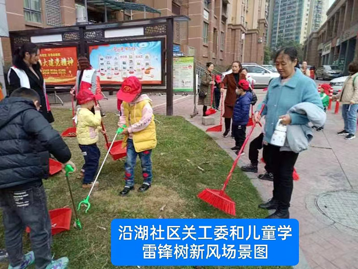 2023年3月4日上午10时0分,沿湖社区关工委副主明钰、关工委办公室负责人宋义英、党委委员兰华英组织沿湖社区辖区内的少年儿童在辖区内开展了学雷锋精神 ,扬时代新风,做好事活动。