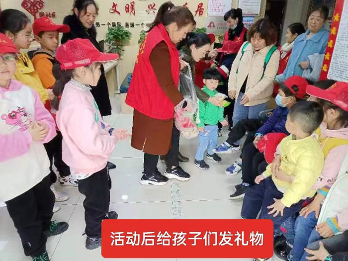 学雷锋精神 ,扬时代新风,做好事活动结束后,负责关工委办公室工作的宋义英老师向参加该次活动的少年儿童每人发给了一份糖果糕点暨大作业本。