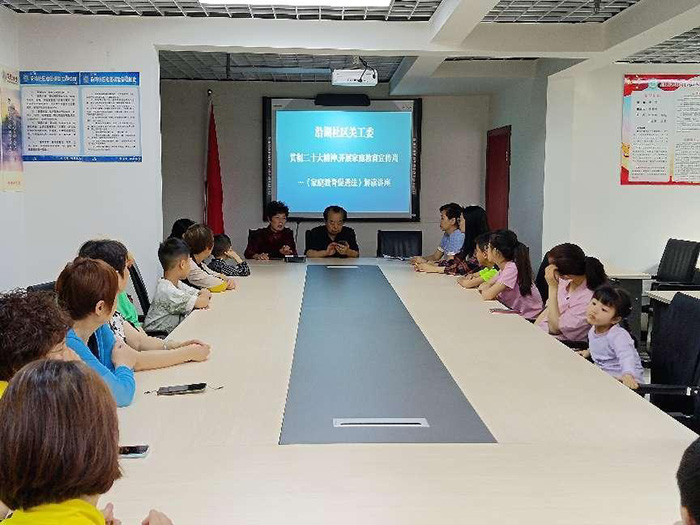 通过宣讲《家庭教育促进法》,与会听讲的家长、“五老”志愿者、社区关工委人员知晓了家庭教育是以立德树人为根本任务,培育和践行社会主义核心价值观,弘扬中华民族优秀传统文化、革命文化、社会主义先进文化,促进未成年人健康成长法规知识,从而自觉担当《家庭教育促进法》的践行者。