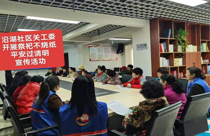 为倡导文明祭祀树立新风,消除火灾隐患,保障清明期间社区安全,4月3日上午9时,沿湖社区关工委在社区会议室开展“祭祀不烧纸·平安过清明”主题宣讲活动。沿湖社区党委副书记、关工委副主任胡春燕主持活动仪式,沿湖社区关工委主任王朕进行主题宣讲,社区关工委成员、关工小组长暨“五老”工作室志愿者25人参会宣讲及宣传活动。