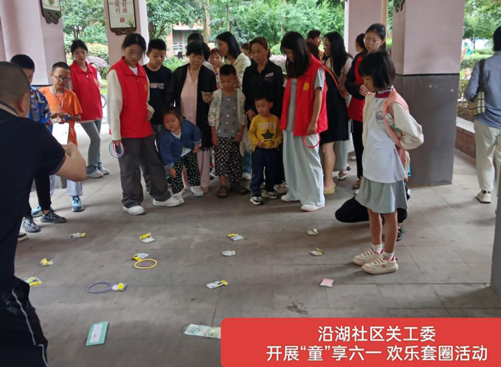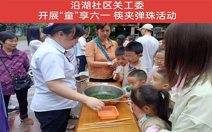 活动以“童”享六一“粽”情端午”为主题,少年孩童们在工作人员的引领和指导下参与了“童”享六一筷夹弹珠有奖、“童”享六一欢乐套圈有奖、“童”享六一欢乐跳圈有奖、“童”享六一领取香粽和咸鸭蛋活动。