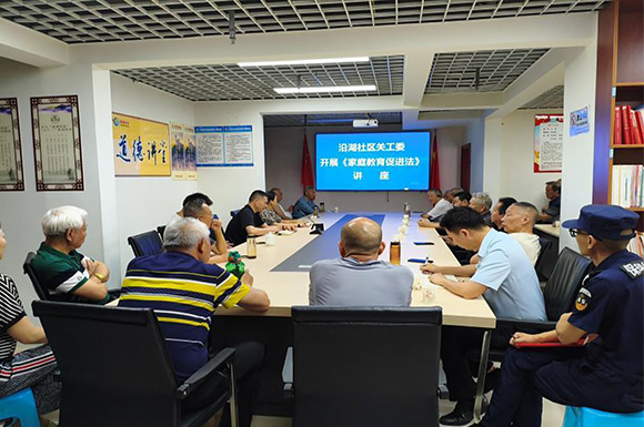 为深入贯彻落实《中华人民共和国家庭教育促进法》,提升社区辖区内家长家庭教育能力,营造和谐健康的家庭成长环境,沿湖社区关工委于5月21日上午9时0分,在社区会议室开展了《家庭教育促进法》知识讲座。社区党委书记、关工委主任王朕主持知识讲座,社区党委副书记、关工委副主任胡春燕主题宣讲,社区党委副书记、关工委副主任张雪梅、关工委执行主任刘承飞、关工委办公室负责人宋义英、关工委成员、青少年家长暨“五老”志愿者到场视听《家庭教育促进法》知识讲座。
