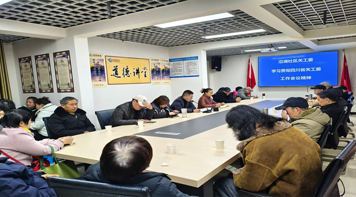 为深入贯彻落实四川省关工委工作会议精神,沿湖社区关工委于2025年3月7日上午9时0分,在社区会议室召开专题学习会议,宣讲会议精神并部署相关工作。会议由社区党委书记、关工委主任王朕主持,社区党委副书记、关工委副主任胡春燕、社区党委副书记、关工委副主任张雪梅、关工委办公室负责人宋义英、关工委执行主任刘承飞、关工委小组长、“五老工作室”志愿者、党员代表及相关工作人员参加会议。