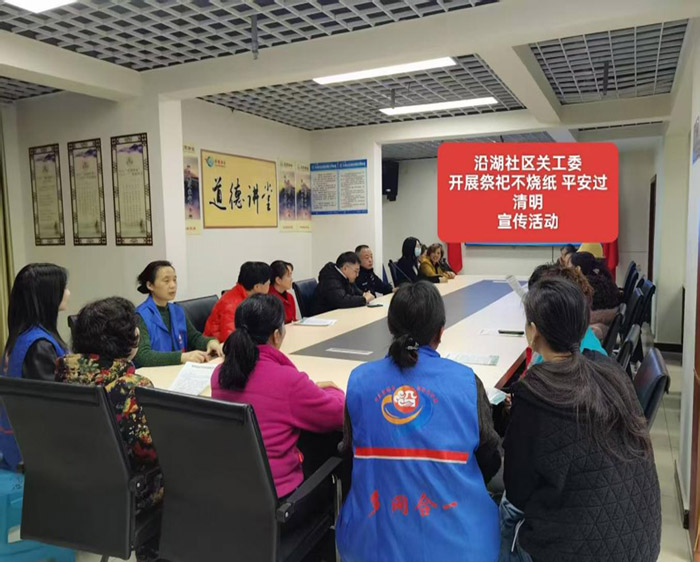 为倡导文明祭祀树立新风,消除火灾隐患,保障清明期间社区安全,4月3日上午9时,沿湖社区关工委在社区会议室开展“祭祀不烧纸·平安过清明”主题宣讲活动。沿湖社区党委副书记、关工委副主任胡春燕主持活动仪式,沿湖社区关工委主任王朕进行主题宣讲,社区关工委成员、关工小组长暨“五老”工作室志愿者25人参会宣讲及宣传活动。