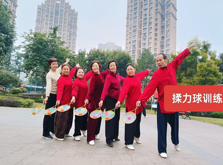 活动现场,参加健身活动的居民朋友热情高涨,有的操练太极拳、有的挥抛揉力球、有的伸展四肢、扭动腰身,现场气氛热烈而欢快,充分展现了全民健身的活力与魅力。